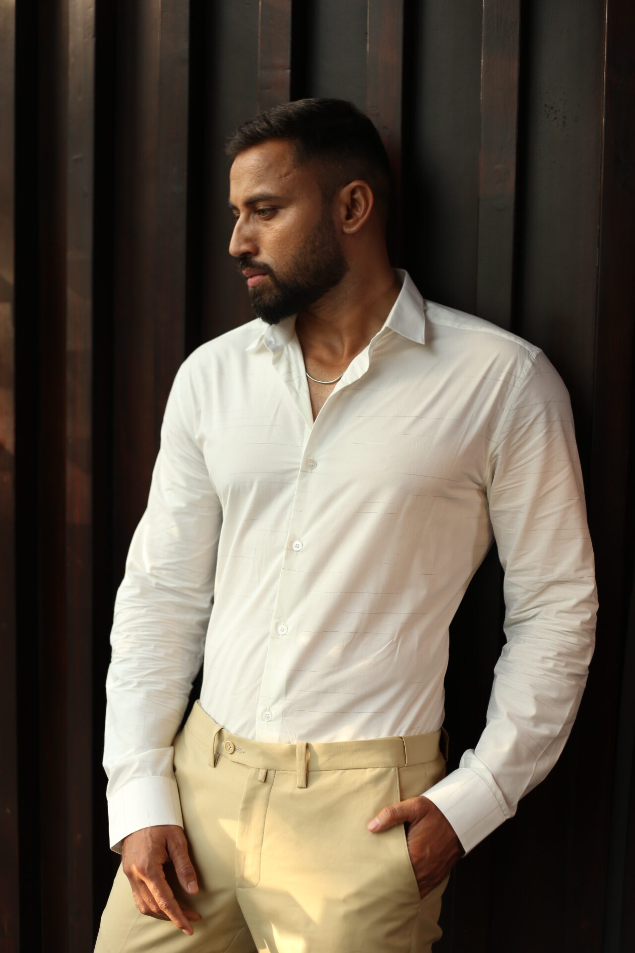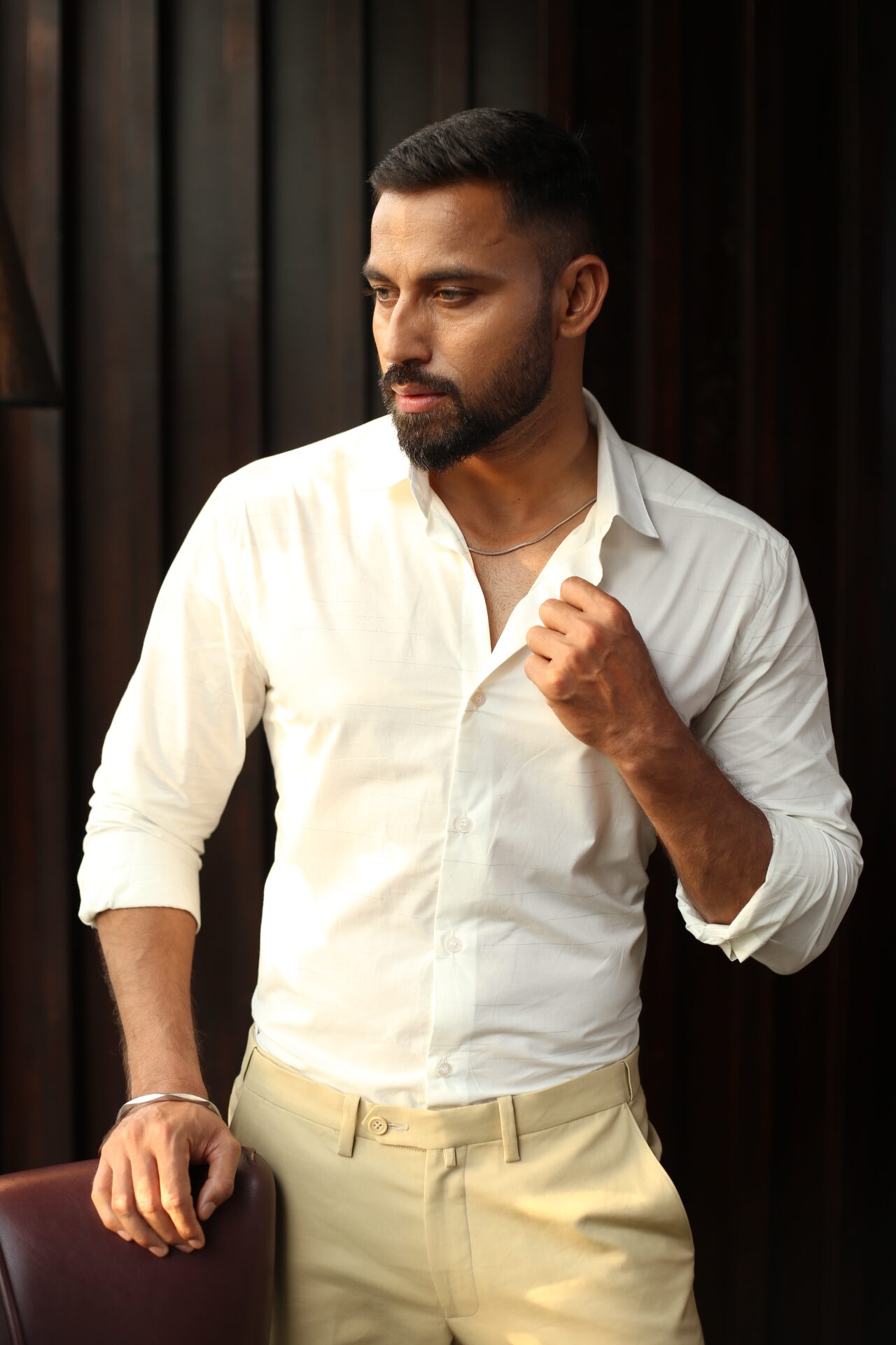 This timeless combination of a crisp white shirt paired with tailored beige trousers delivers effortless sophistication. Designed for men who value clean, refined style, the outfit features a smooth, comfortable fabric that enhances mobility while maintaining a sharp structure. Perfect for office wear, business meetings, casual evenings, and smart daytime events, this look combines elegance with everyday versatility. The classic color pairing ensures a polished and confident appearance in any setting.