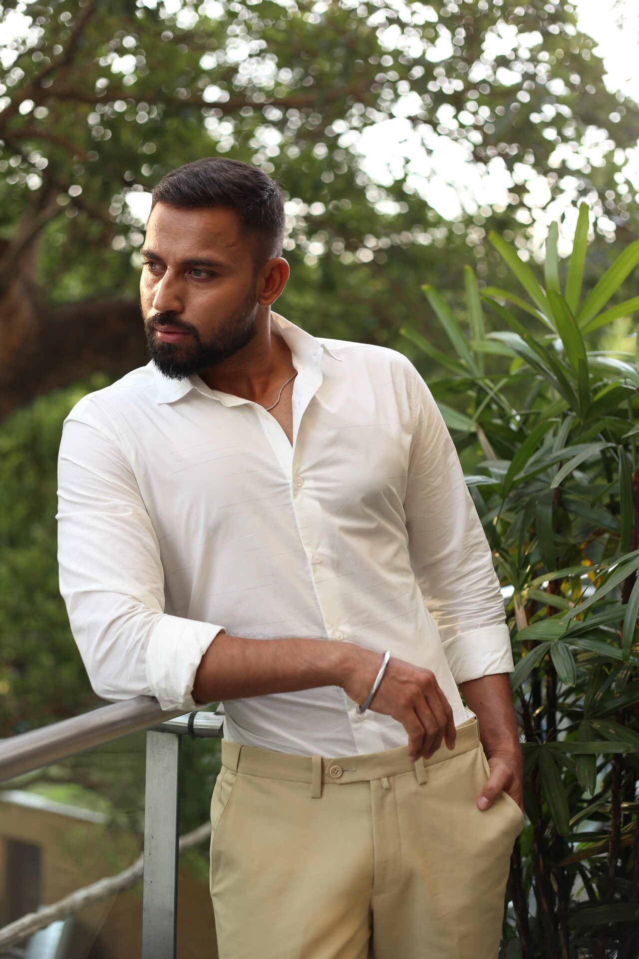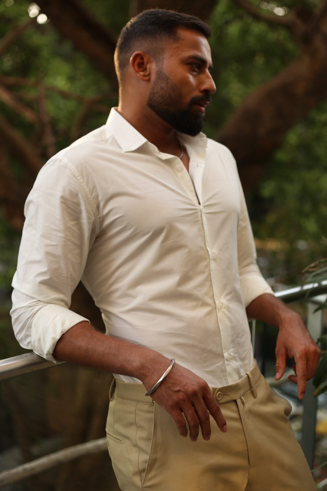 Classic White Shirt & Beige Trouser Men’s Formal Set