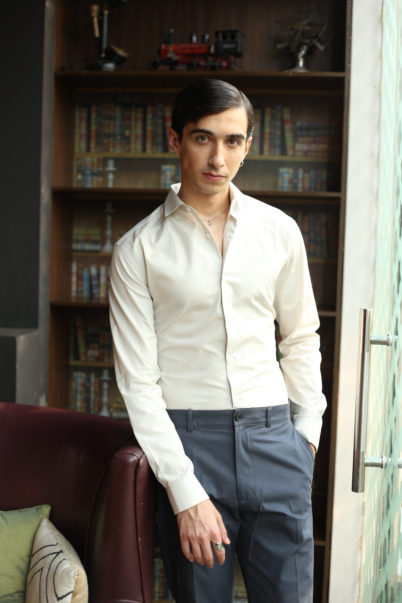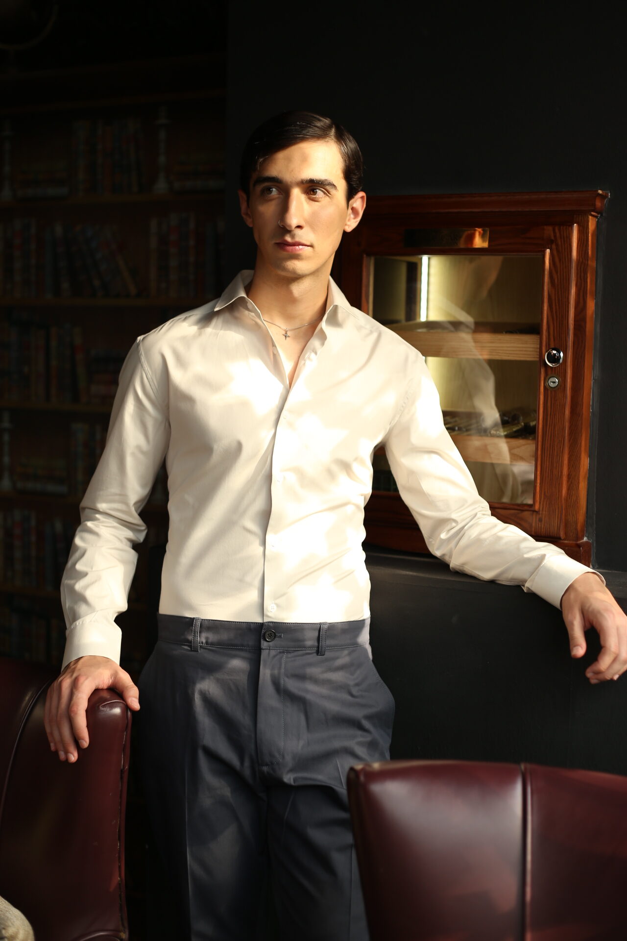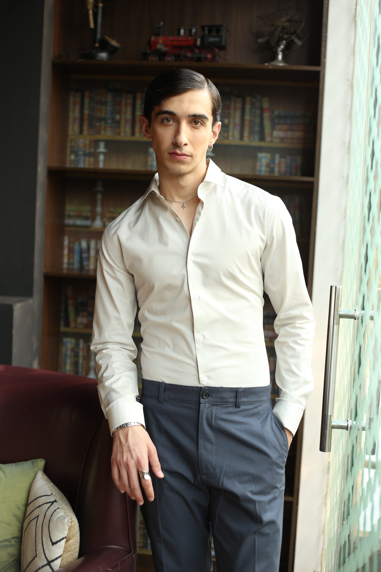 This premium slim-fit white formal shirt is designed for men who appreciate sharp, modern style. Crafted from soft, breathable fabric, it offers a smooth finish and a tailored silhouette that enhances your overall look. Perfect for office wear, meetings, or evening events, the shirt pairs effortlessly with trousers for a clean, polished appearance. Its refined cut, neat collar, and minimal detailing make it a versatile wardrobe essential.