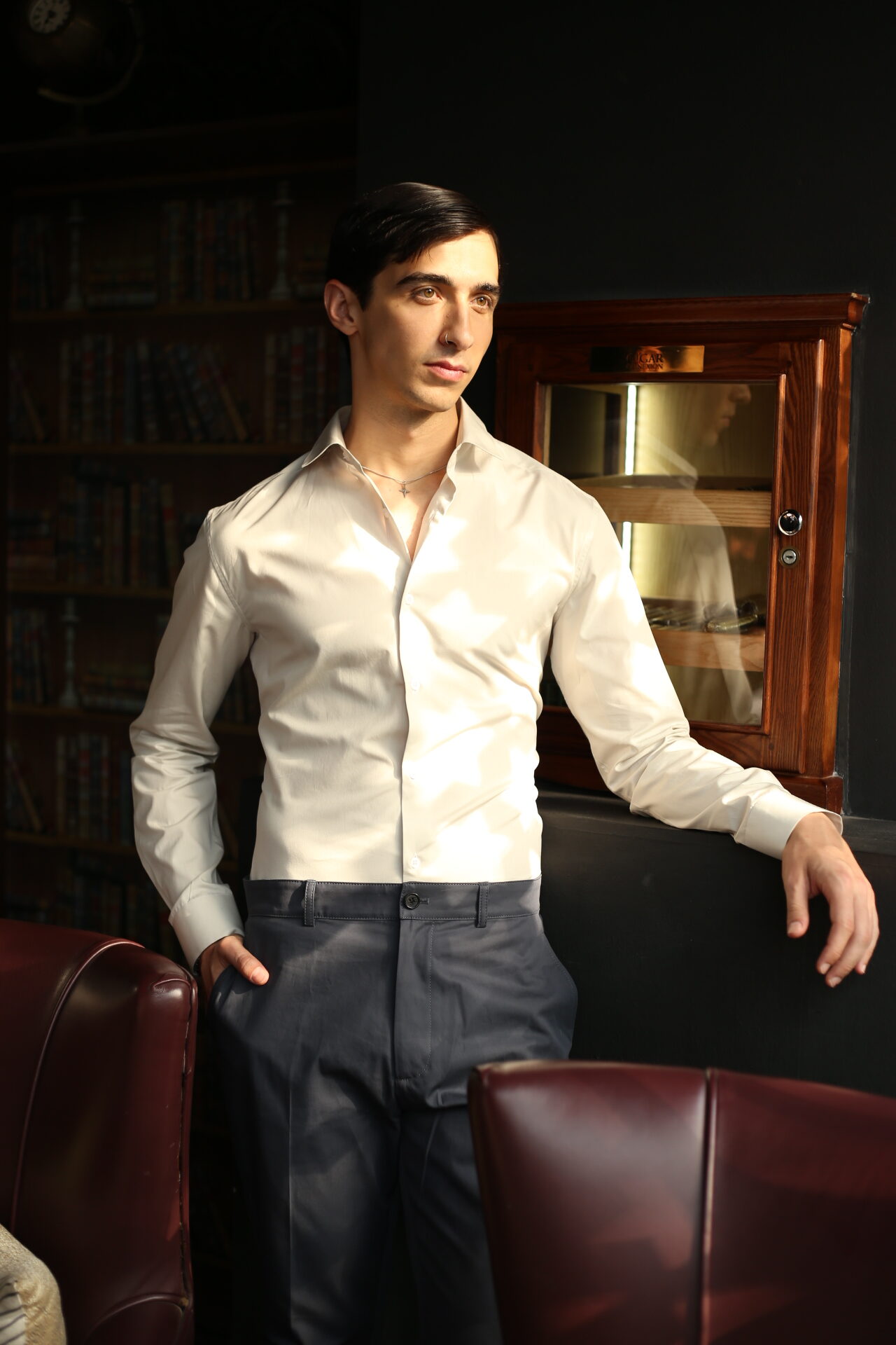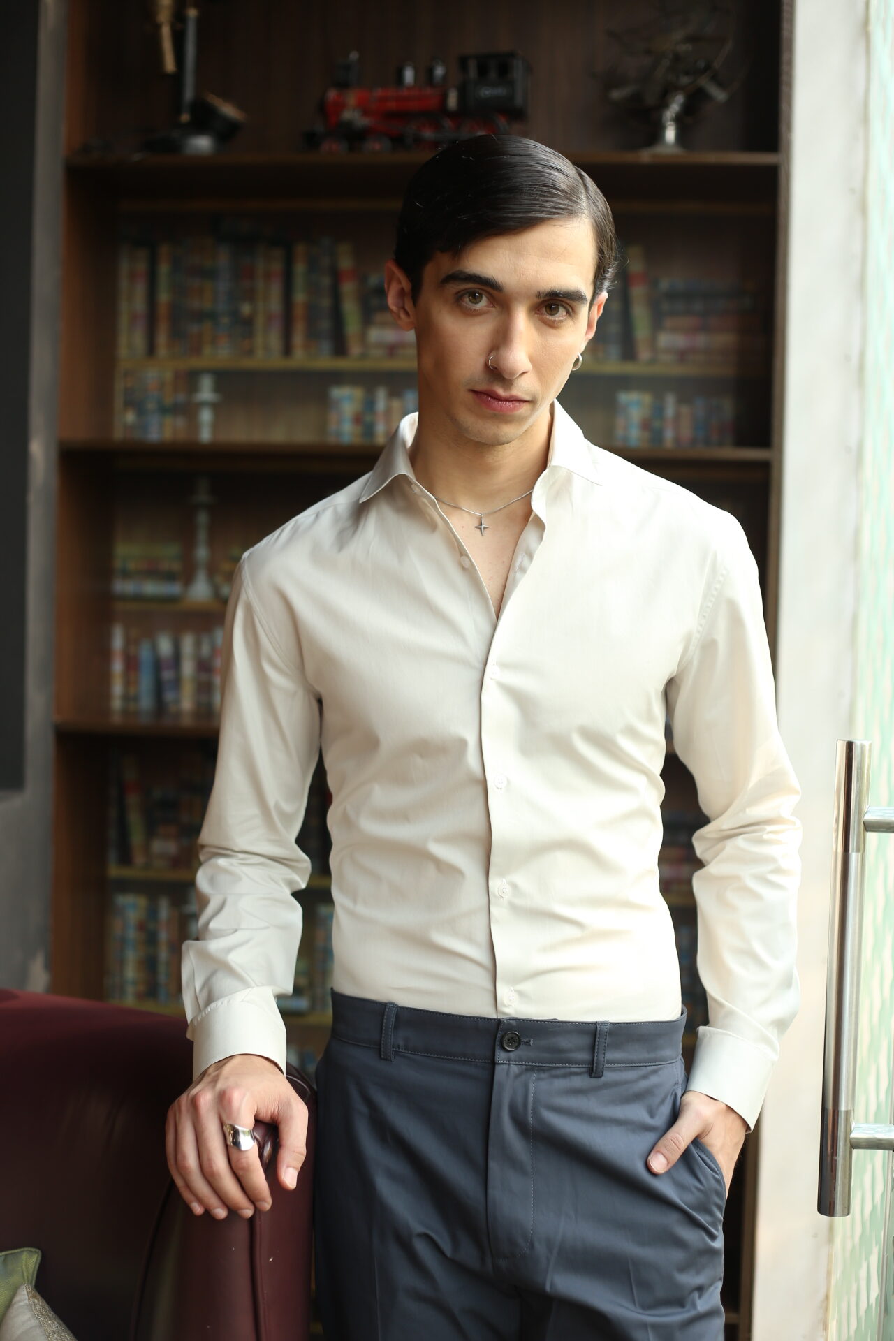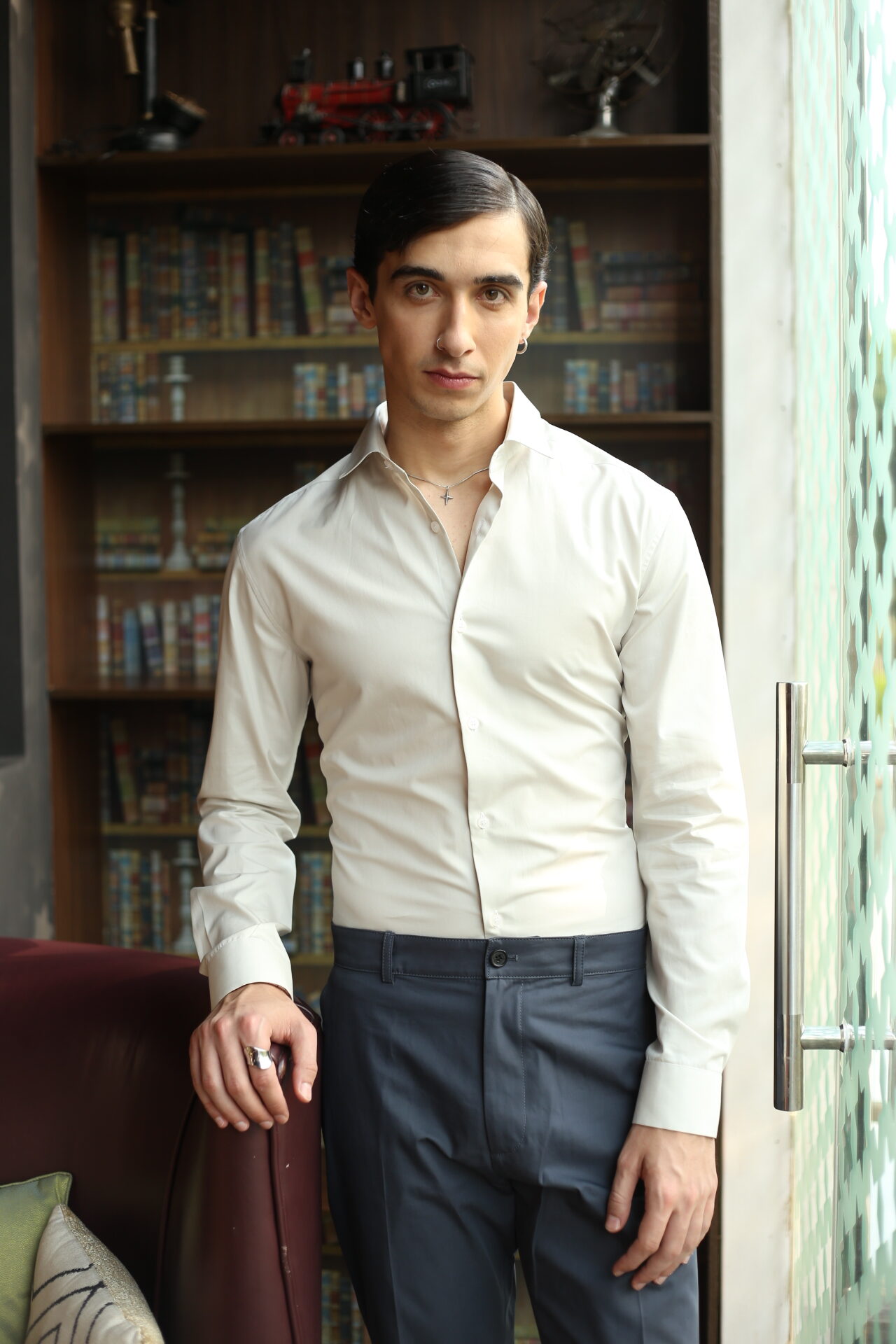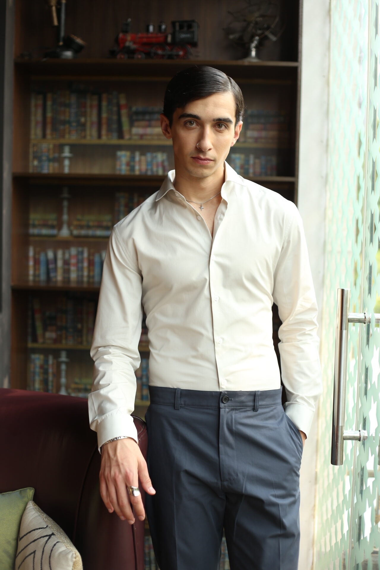 This premium slim-fit white formal shirt is designed for men who appreciate sharp, modern style. Crafted from soft, breathable fabric, it offers a smooth finish and a tailored silhouette that enhances your overall look. Perfect for office wear, meetings, or evening events, the shirt pairs effortlessly with trousers for a clean, polished appearance. Its refined cut, neat collar, and minimal detailing make it a versatile wardrobe essential.